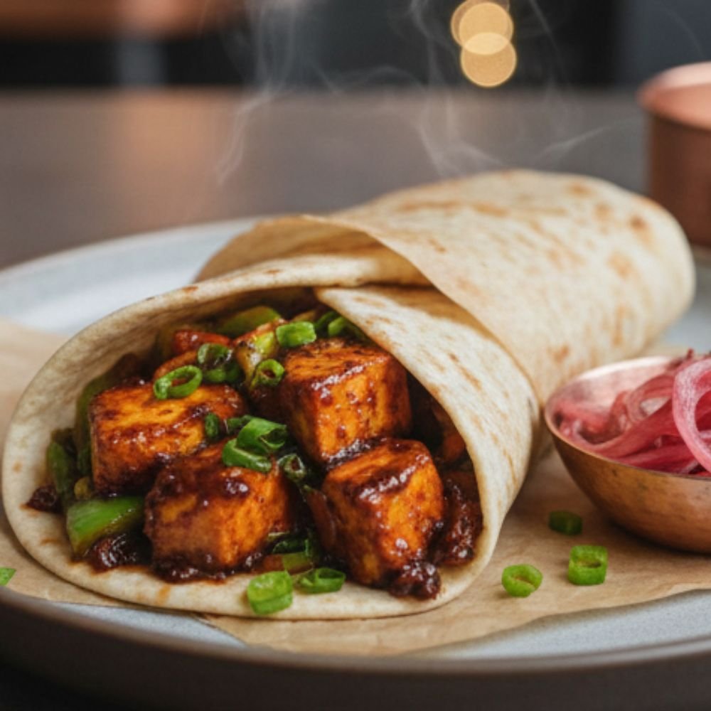 Chilli Paneer Wrap combines crispy paneer tossed in a spicy Indo-Chinese chilli sauce with fresh vegetables, all wrapped in a soft flatbread. Bold, tangy, and satisfying, it’s a perfect fusion wrap for flavour lovers.