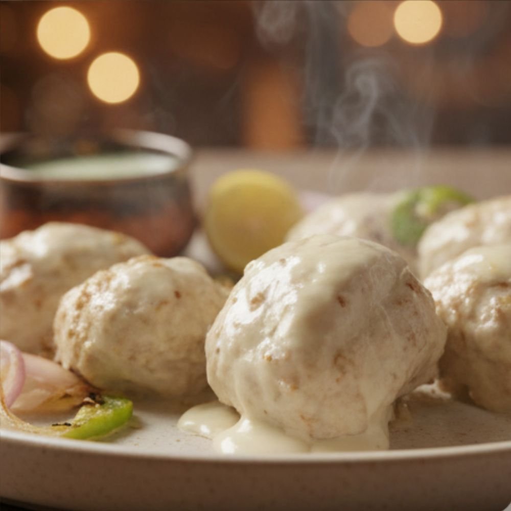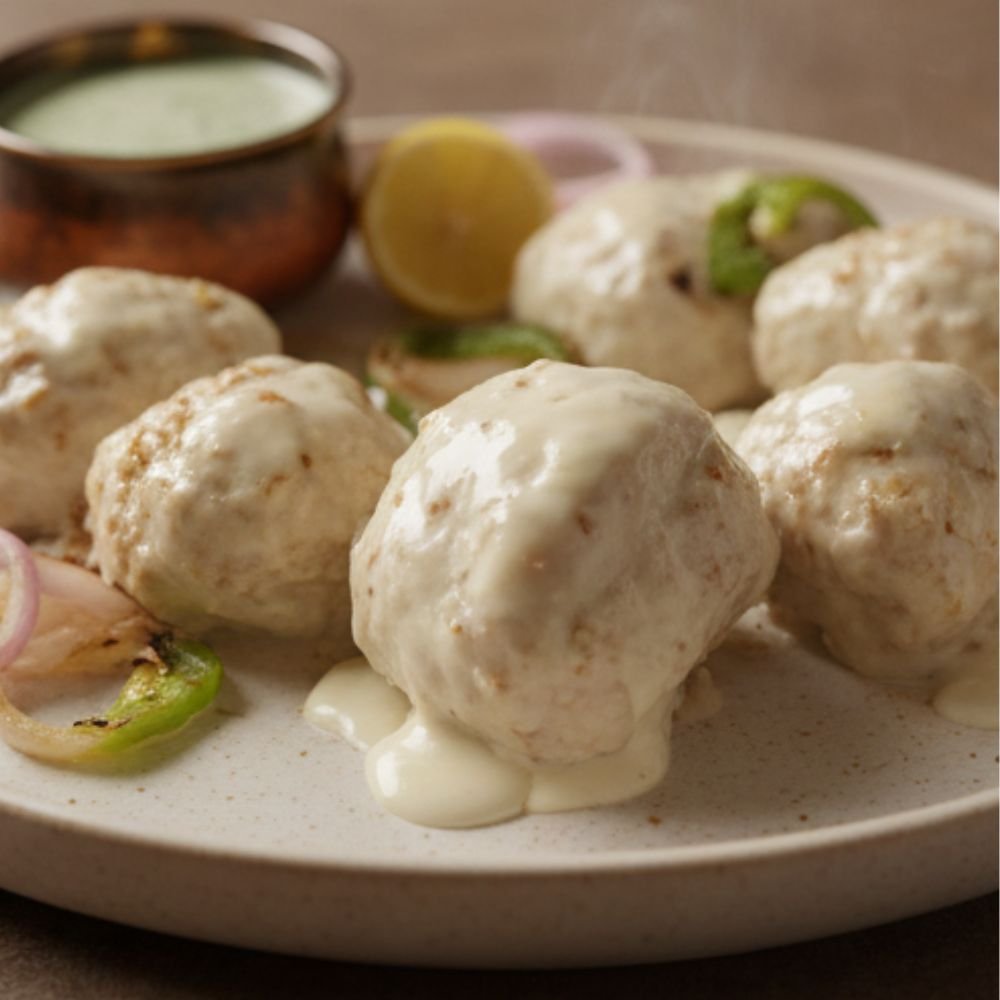 The chaap is coated in a luxurious blend of fresh cream, cheese, cashew paste, and gentle spices, creating a mildly sweet, creamy flavour with subtle smokiness.
