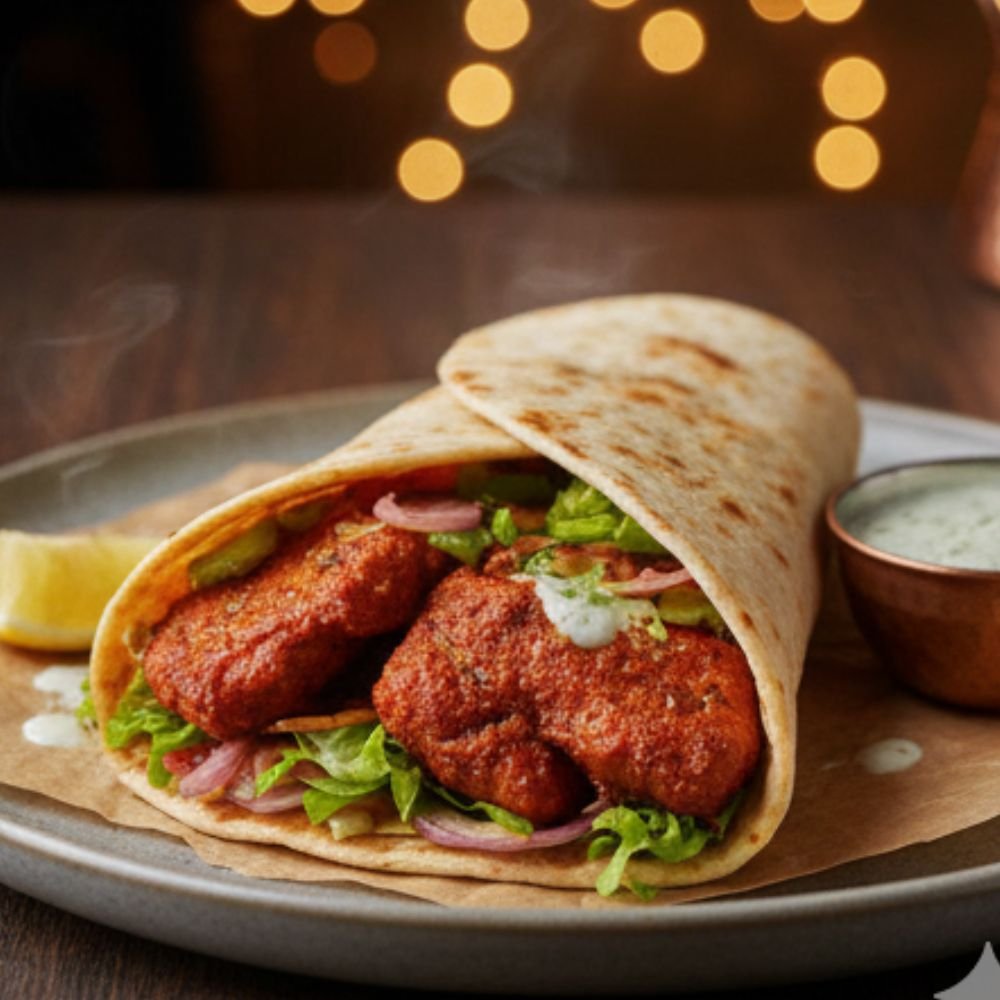 Masala Chaap Wrap features tender soya chaap cooked in aromatic Indian spices, layered with fresh vegetables and flavourful sauces, all wrapped in a soft flatbread. Spicy, hearty, and satisfying, it’s ideal for a filling on-the-go meal.