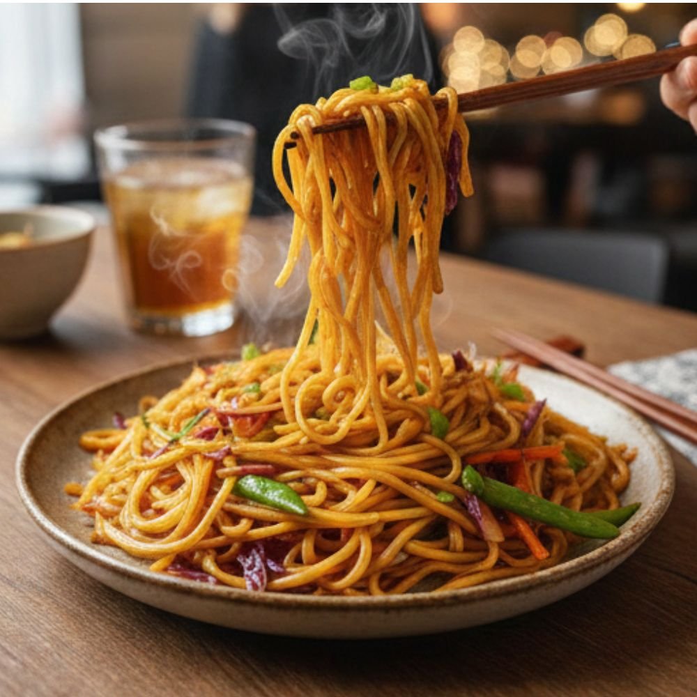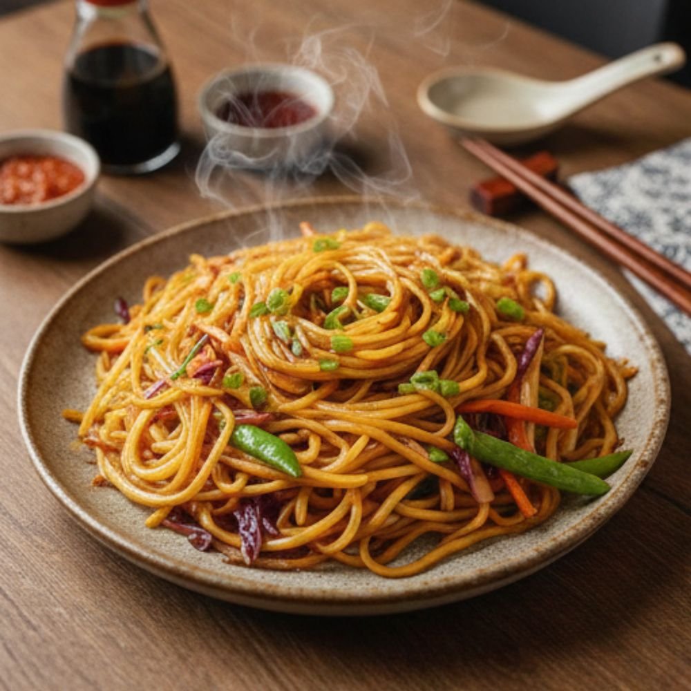 Veg Noodles is a popular Indo-Chinese dish made with stir-fried noodles tossed with fresh vegetables, garlic, and savoury sauces. Light, flavourful, and satisfying, it’s a perfect choice for a quick and comforting meal.